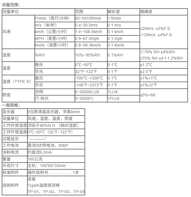 ·首创一机四功能,风速计/照度计/温度计/湿度计